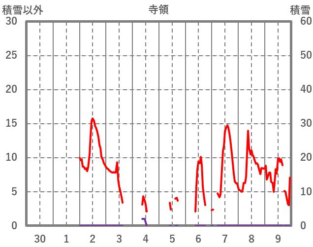 | 日 | 時 | 気温 | 降水 | 風向/風速 | 日照 | 積雪 | 降雪 |