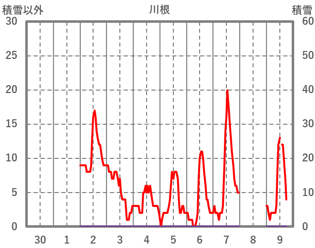 | 日 | 時 | 気温 | 降水 | 風向/風速 | 日照 | 積雪 | 降雪 |