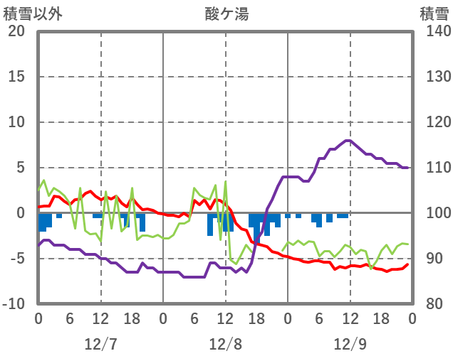| 日 | 時 | 気温 | 降水 | 風向/風速 | 日照 | 積雪 | 降雪 |