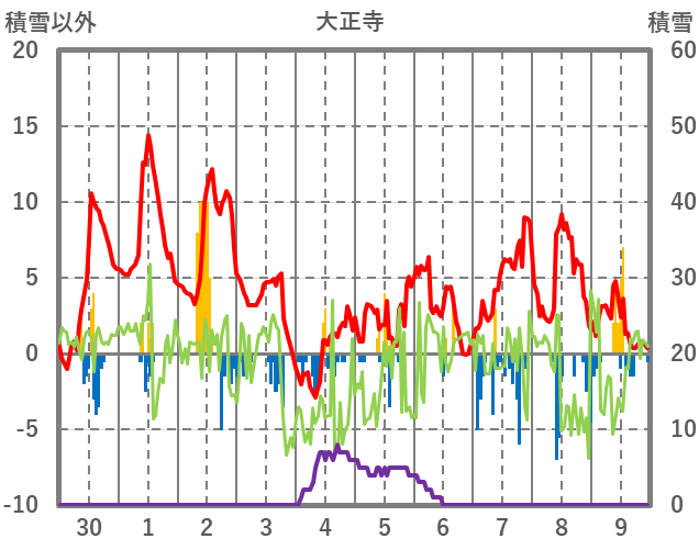 | 日 | 時 | 気温 | 降水 | 風向/風速 | 日照 | 積雪 | 降雪 |