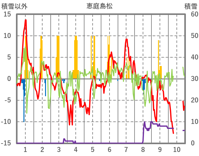 | 日 | 時 | 気温 | 降水 | 風向/風速 | 日照 | 積雪 | 降雪 |