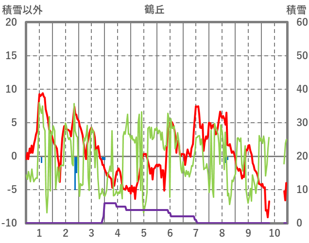| 日 | 時 | 気温 | 降水 | 風向/風速 | 日照 | 積雪 | 降雪 |