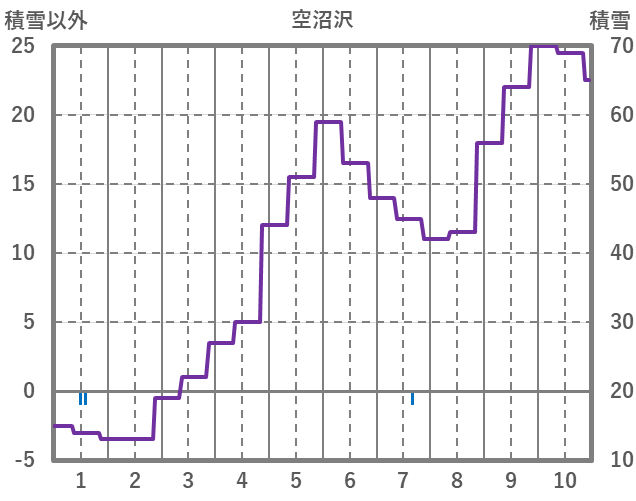 | 日 | 時 | 気温 | 降水 | 風向/風速 | 日照 | 積雪 | 降雪 |