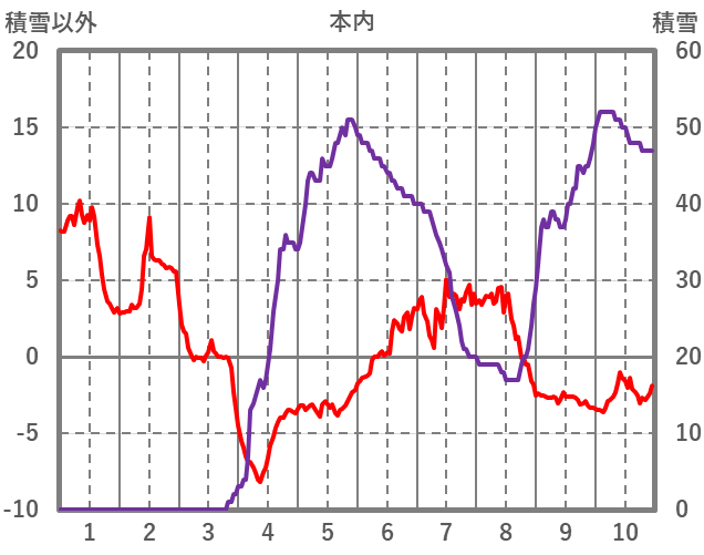 | 日 | 時 | 気温 | 降水 | 風向/風速 | 日照 | 積雪 | 降雪 |