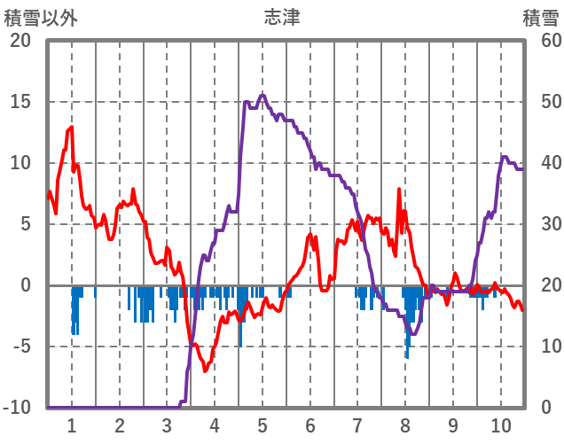 | 日 | 時 | 気温 | 降水 | 風向/風速 | 日照 | 積雪 | 降雪 |