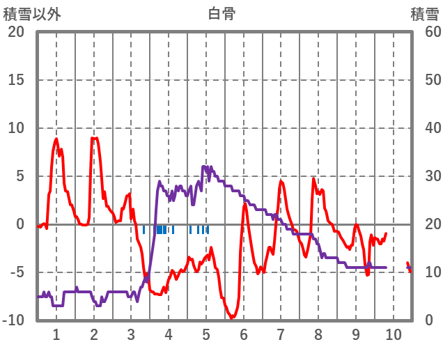 | 日 | 時 | 気温 | 降水 | 風向/風速 | 日照 | 積雪 | 降雪 |