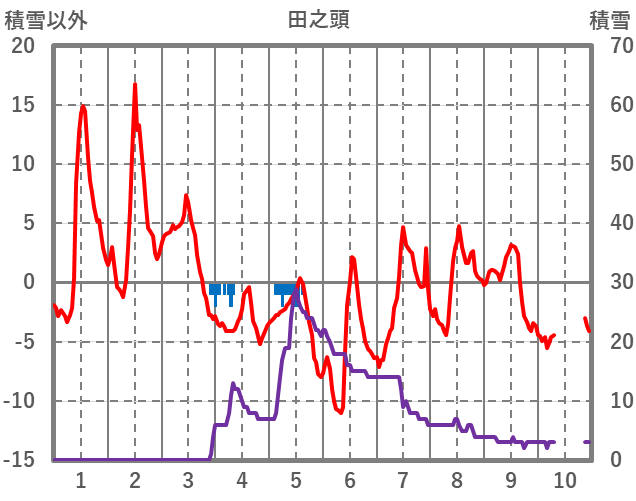 | 日 | 時 | 気温 | 降水 | 風向/風速 | 日照 | 積雪 | 降雪 |
