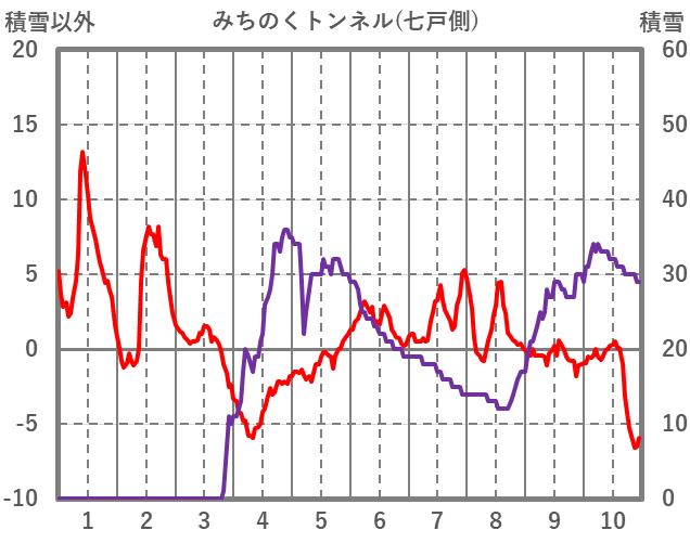 | 日 | 時 | 気温 | 降水 | 風向/風速 | 日照 | 積雪 | 降雪 |