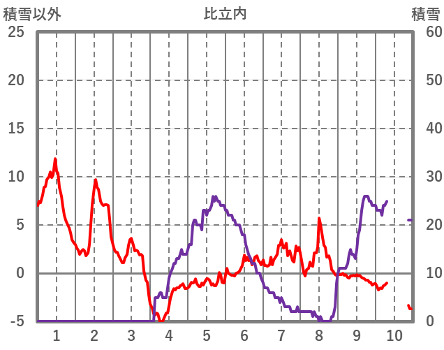 | 日 | 時 | 気温 | 降水 | 風向/風速 | 日照 | 積雪 | 降雪 |