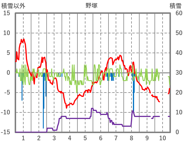 | 日 | 時 | 気温 | 降水 | 風向/風速 | 日照 | 積雪 | 降雪 |