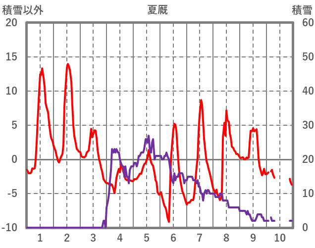 | 日 | 時 | 気温 | 降水 | 風向/風速 | 日照 | 積雪 | 降雪 |