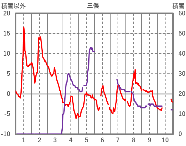 | 日 | 時 | 気温 | 降水 | 風向/風速 | 日照 | 積雪 | 降雪 |