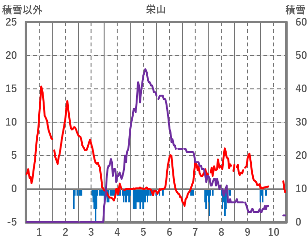 | 日 | 時 | 気温 | 降水 | 風向/風速 | 日照 | 積雪 | 降雪 |