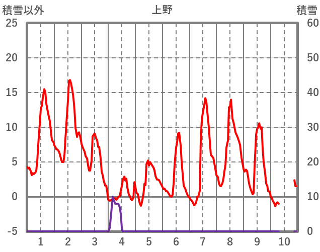 | 日 | 時 | 気温 | 降水 | 風向/風速 | 日照 | 積雪 | 降雪 |