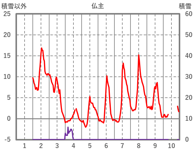 | 日 | 時 | 気温 | 降水 | 風向/風速 | 日照 | 積雪 | 降雪 |
