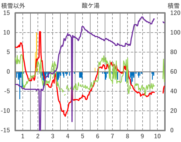 | 日 | 時 | 気温 | 降水 | 風向/風速 | 日照 | 積雪 | 降雪 |