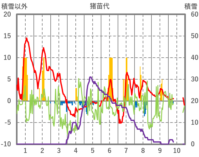 | 日 | 時 | 気温 | 降水 | 風向/風速 | 日照 | 積雪 | 降雪 |