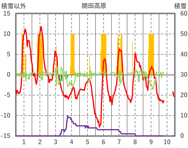 | 日 | 時 | 気温 | 降水 | 風向/風速 | 日照 | 積雪 | 降雪 |
