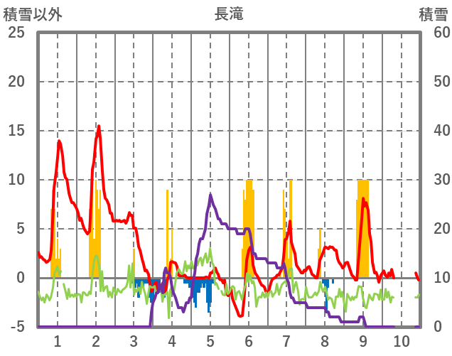 | 日 | 時 | 気温 | 降水 | 風向/風速 | 日照 | 積雪 | 降雪 |