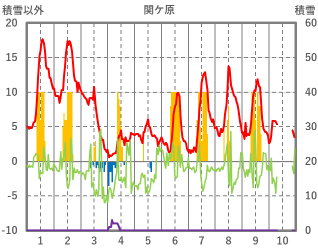 | 日 | 時 | 気温 | 降水 | 風向/風速 | 日照 | 積雪 | 降雪 |