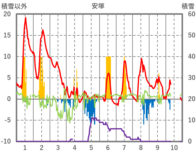 | 日 | 時 | 気温 | 降水 | 風向/風速 | 日照 | 積雪 | 降雪 |