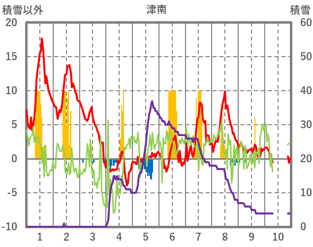 | 日 | 時 | 気温 | 降水 | 風向/風速 | 日照 | 積雪 | 降雪 |
