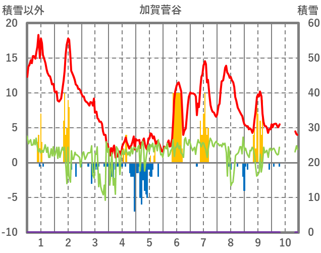 | 日 | 時 | 気温 | 降水 | 風向/風速 | 日照 | 積雪 | 降雪 |