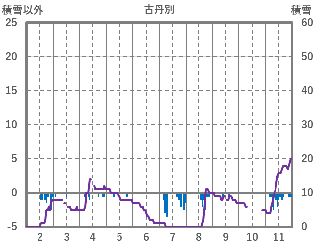 | 日 | 時 | 気温 | 降水 | 風向/風速 | 日照 | 積雪 | 降雪 |