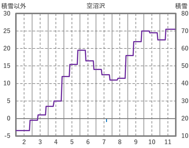 | 日 | 時 | 気温 | 降水 | 風向/風速 | 日照 | 積雪 | 降雪 |