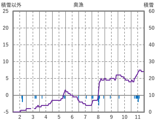 | 日 | 時 | 気温 | 降水 | 風向/風速 | 日照 | 積雪 | 降雪 |