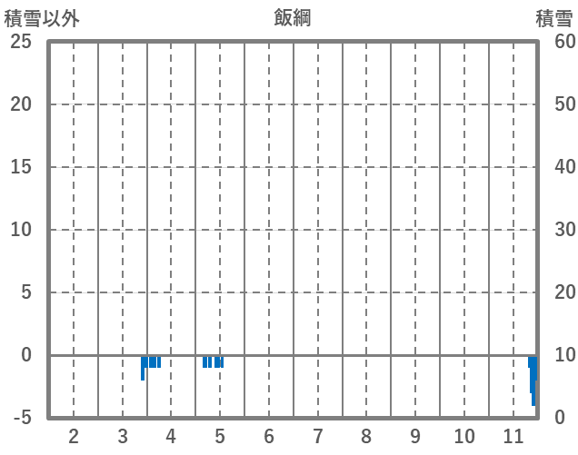| 日 | 時 | 気温 | 降水 | 風向/風速 | 日照 | 積雪 | 降雪 |