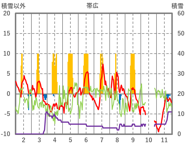 | 日 | 時 | 気温 | 降水 | 風向/風速 | 日照 | 積雪 | 降雪 |