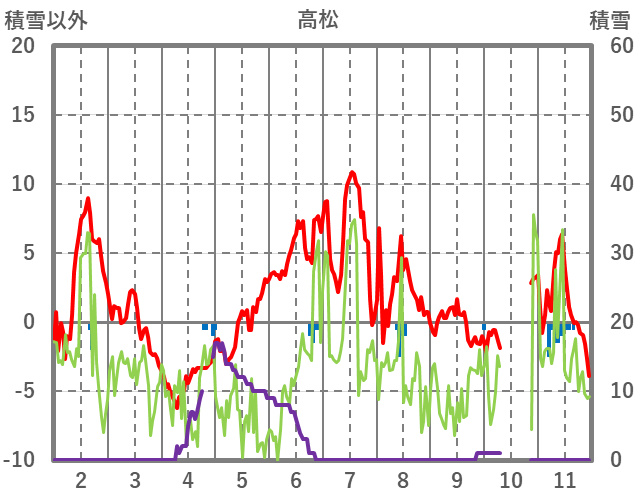 | 日 | 時 | 気温 | 降水 | 風向/風速 | 日照 | 積雪 | 降雪 |