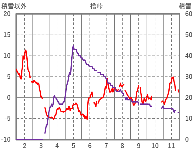 | 日 | 時 | 気温 | 降水 | 風向/風速 | 日照 | 積雪 | 降雪 |