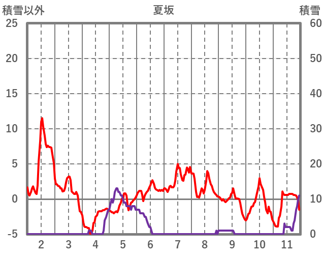 | 日 | 時 | 気温 | 降水 | 風向/風速 | 日照 | 積雪 | 降雪 |