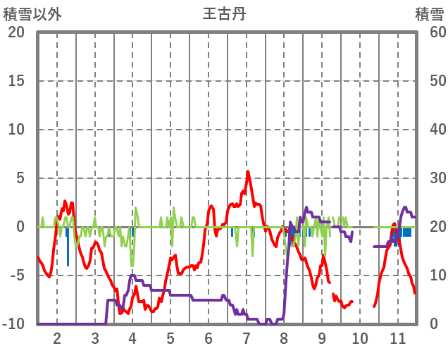 | 日 | 時 | 気温 | 降水 | 風向/風速 | 日照 | 積雪 | 降雪 |
