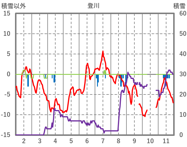 | 日 | 時 | 気温 | 降水 | 風向/風速 | 日照 | 積雪 | 降雪 |