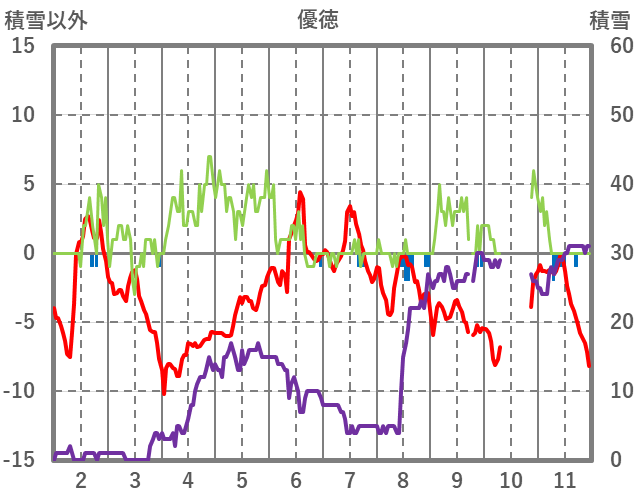 | 日 | 時 | 気温 | 降水 | 風向/風速 | 日照 | 積雪 | 降雪 |