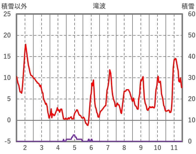 | 日 | 時 | 気温 | 降水 | 風向/風速 | 日照 | 積雪 | 降雪 |