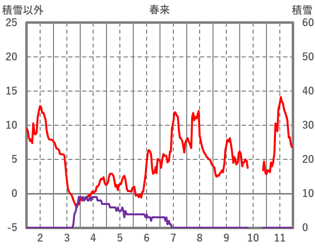 | 日 | 時 | 気温 | 降水 | 風向/風速 | 日照 | 積雪 | 降雪 |