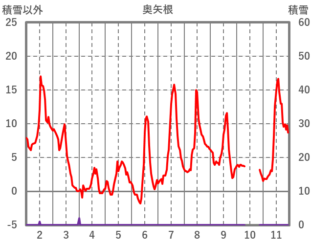 | 日 | 時 | 気温 | 降水 | 風向/風速 | 日照 | 積雪 | 降雪 |