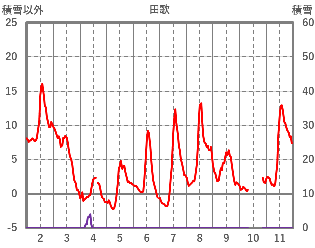 | 日 | 時 | 気温 | 降水 | 風向/風速 | 日照 | 積雪 | 降雪 |