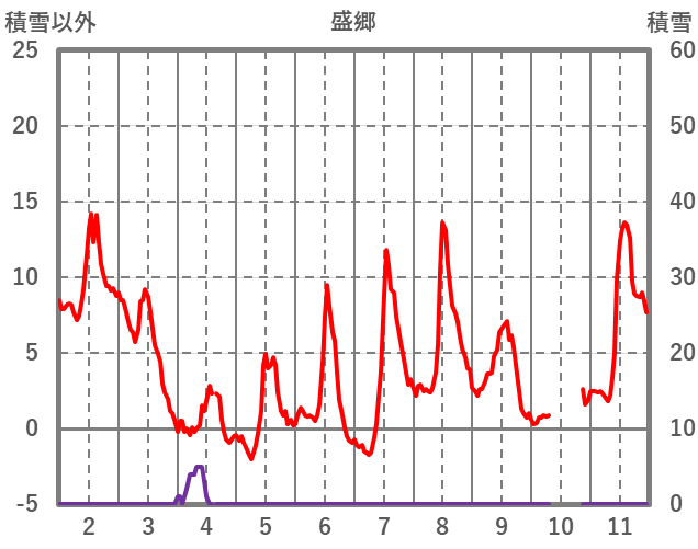 | 日 | 時 | 気温 | 降水 | 風向/風速 | 日照 | 積雪 | 降雪 |