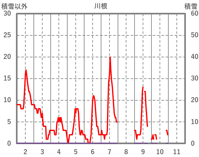 | 日 | 時 | 気温 | 降水 | 風向/風速 | 日照 | 積雪 | 降雪 |