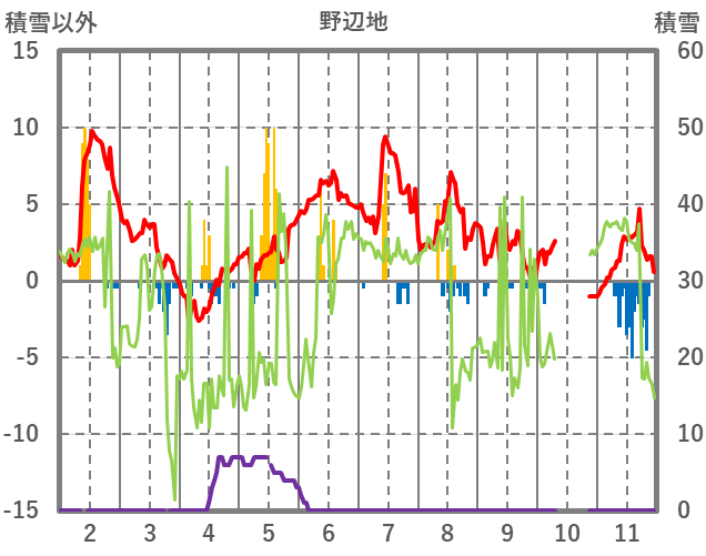 | 日 | 時 | 気温 | 降水 | 風向/風速 | 日照 | 積雪 | 降雪 |