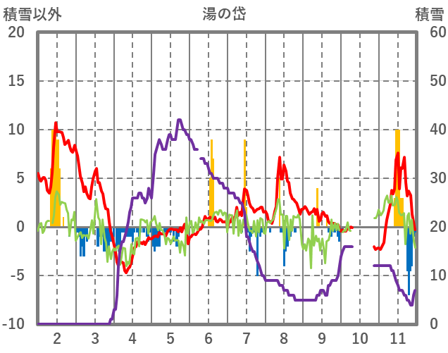 | 日 | 時 | 気温 | 降水 | 風向/風速 | 日照 | 積雪 | 降雪 |