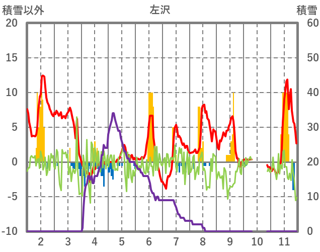 | 日 | 時 | 気温 | 降水 | 風向/風速 | 日照 | 積雪 | 降雪 |