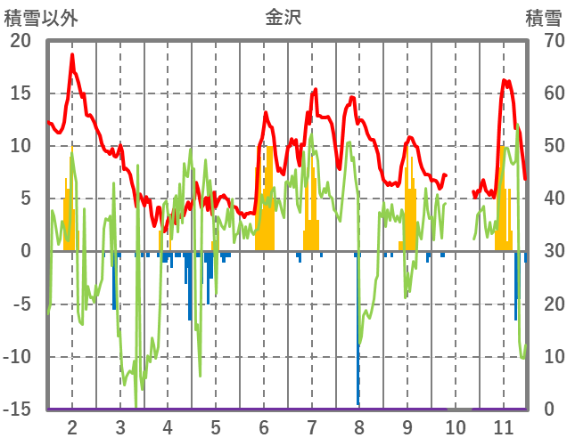 | 日 | 時 | 気温 | 降水 | 風向/風速 | 日照 | 積雪 | 降雪 |