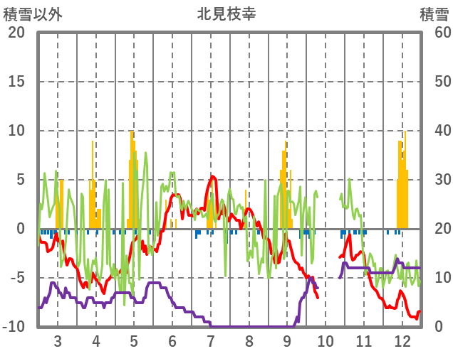 | 日 | 時 | 気温 | 降水 | 風向/風速 | 日照 | 積雪 | 降雪 |