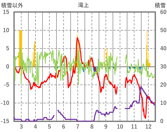 | 日 | 時 | 気温 | 降水 | 風向/風速 | 日照 | 積雪 | 降雪 |